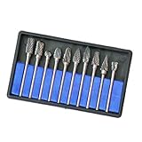超硬バー リューター ビット 10種類 10本セット ドリルビット ロータリーバー タングステン鋼でゴリゴリ削れる超硬カッター 金属加工用 3mm軸 刃幅6mm