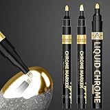 Elegirme 金メッキ 補修ペン ゴールド メッキ塗料 塗るだけでメッキ 2.0mm 太/1.0mm 細/0.7mm チゼル 3本セット 強い光沢感 メタリック 防水 耐摩耗 鏡面効果 車 プラモデル 模型 補修用